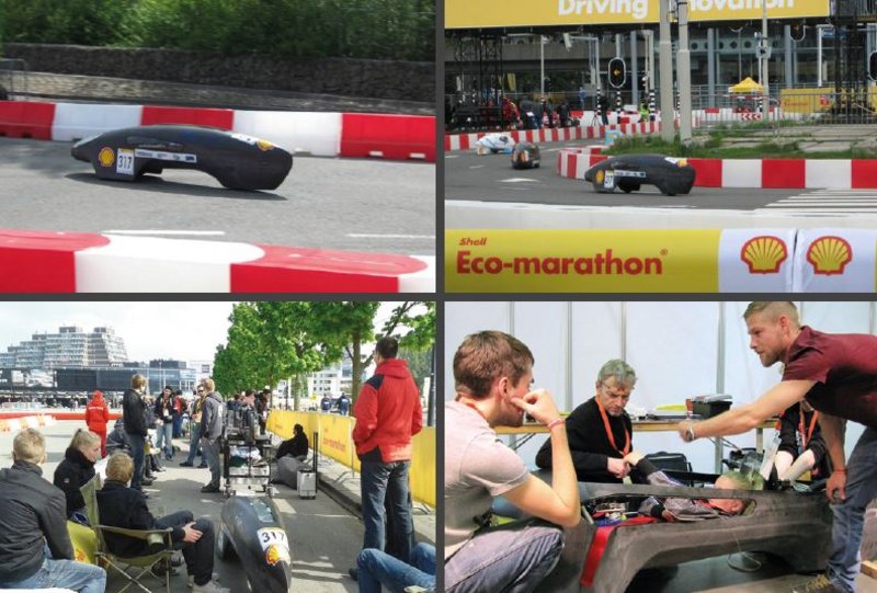They started with a general idea, then toiled in the workshop on the design and construction of the extremely efficient vehicle for hundreds of hours before managing to get the car ready at the very last minute. The first test run took place around a parking lot near the track in Rotterdam.